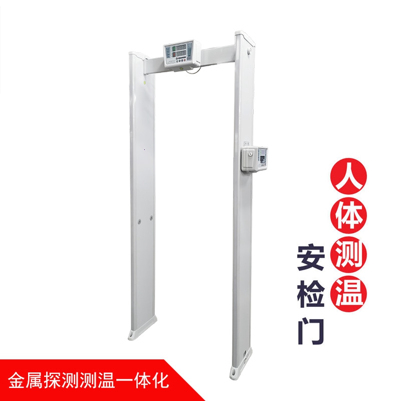 人體測溫安檢門一體機II型遠距離高精度人體測溫安檢門,集帶人體溫度檢測和金屬探測為一體的安全檢測門,門頭裝有高精度的體溫檢測探頭,探測角度可以上下移動, 能夠測量人體額頭的表面溫度,然后根據人體額頭的溫度與體溫的關系得到人體的實際體溫。檢測儀的光學組件將額頭發射和反射的能量匯集到傳感器上,通過電子組件將此信息轉化成溫度讀數并顯示在顯示面板上,當溫度讀數超過高溫報警值時,儀器會發出報警聲.報警溫度可隨意設置.具有防水、防火、防腐等特點。適用于管制刀具和槍支等危險品的安全檢查,廣泛應用于適用于機場,車站,出入境檢查站,等人員密集場所。是防止疫情擴散的有效手段。