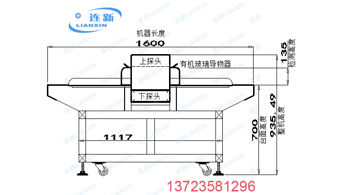說明:靈敏度的高低由檢測高度(即通道或龍門)來決定最高檢測精度。龍門越高,靈敏度就相應降低。以上對應的高度和檢測標準是在空機狀態下的檢測結果;檢測通道高度和寬度,都可以按要求定做!